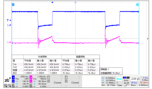 一般建议使用I2R的公式,下图是ZDS4000Plus的开关损耗测试图。